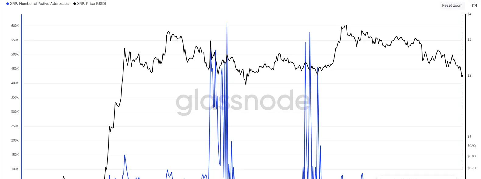 XRP ha caído por debajo del $2 nivel psicológico, debido a un retroceso del 8% en las últimas 24 horas. Esto lleva su pérdida semanal al 15%, lo que lo hace no rentable para aquellos que compraron a principios de año.
