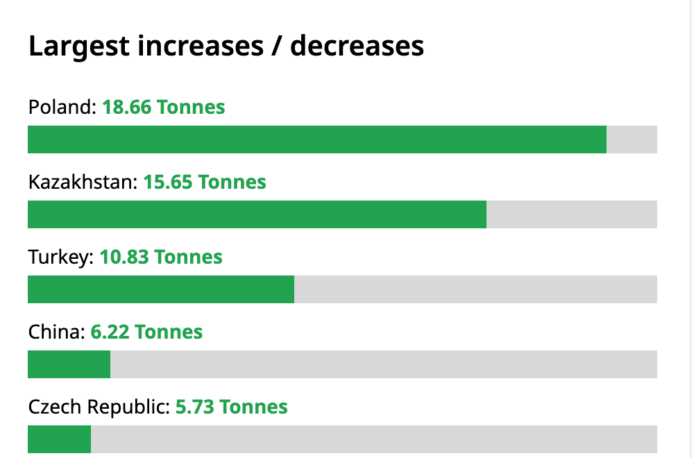 Khususnya setelah pecahnya perang Rusia-Ukraina dan AS bisa membekukan cadangan asing sewaktu-waktu, negara-negara sadar: hanya emas yang disimpan di brankas sendiri adalah kekayaan kedaulatan sejati.