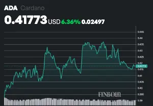 Cardano (ADA), diperdagangkan sekitar $0.417 dengan kapitalisasi pasar mendekati $14.99 miliar, memerlukan pertumbuhan hampir 233% untuk mencapai tonggak $50 miliar.