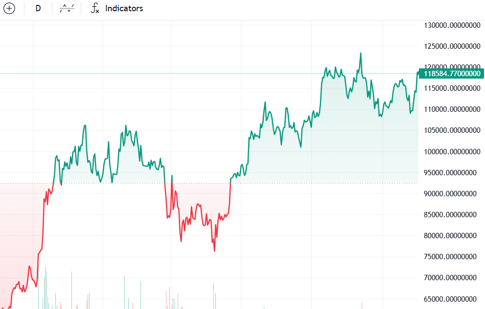 ビットコインは過去1週間で6%以上急騰し、8月15日以来初めて$118,500のラインを回復したとデータは示しています。