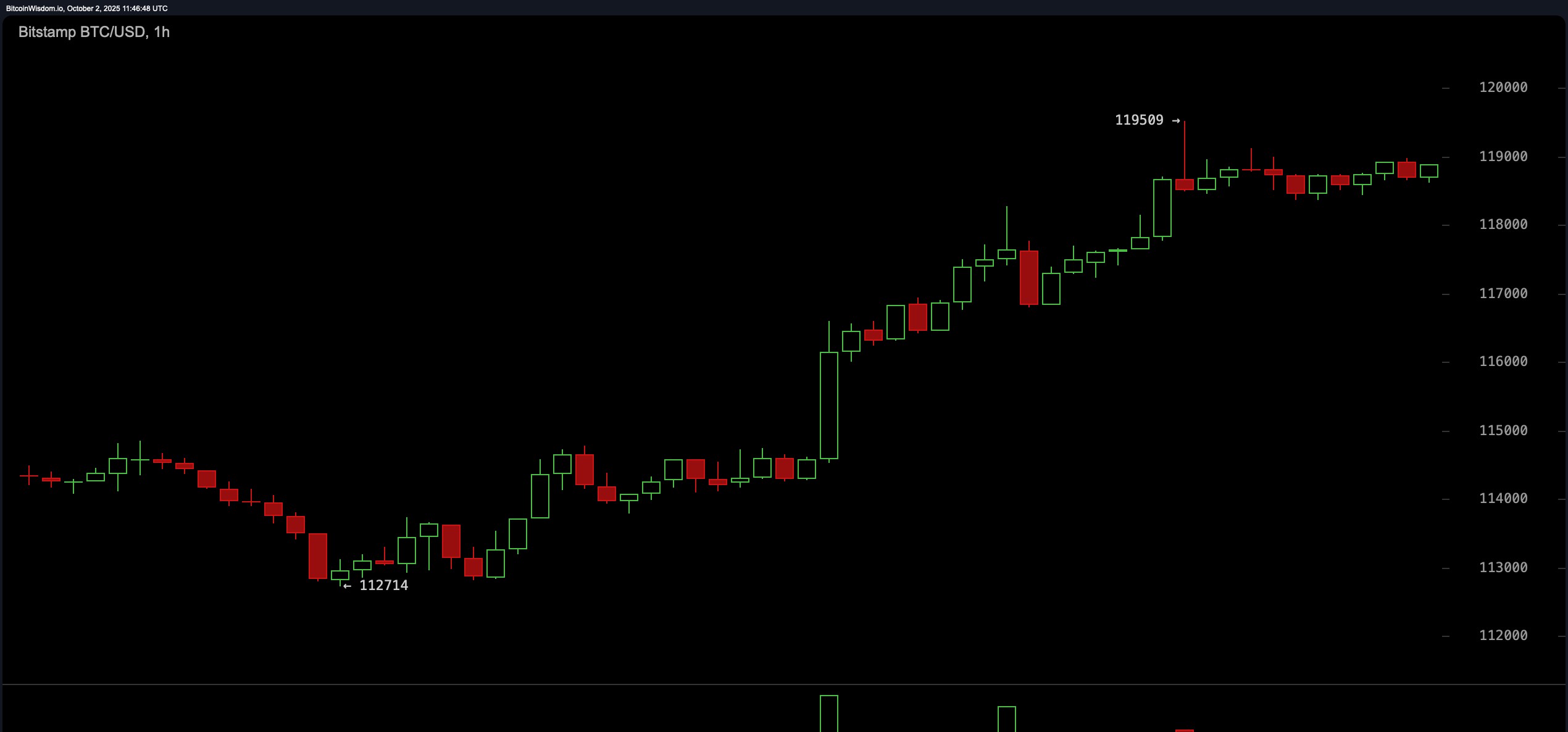 **2025年10月2日、ビットコインは上昇トレンドを延長し、価格の動きは複数の時間枠で強いブル市場の勢いを反映しています。1時間、4時間、日足チャートの市場構造と指標は持続的な強さを示しており、最近のブレイクアウトと統合に続くさらなる上昇の可能性を示唆するいくつかのテクニカルセットアップがあります。**# ビットコインチャートの展望と価格予測日足チャートでは、ビットコインが$114,000~$116,000のミニ調整ゾーンを明確に突破し、強気のトレンド継続を示しています。10月1日から2日の間に形成された強い緑のキャンドルと、増加する取引量は、機関投資家の参加または大規模な蓄積を示唆しています。9月を通じた下落トレンドの後、市場が$118,000以上のレベルを回復する能力は、トレンドの反転を強化します。$116,500--$117,500ゾーンへの潜在的なプルバックは、有利なロングエントリーポイントを提供する可能性がありますが、抵抗は$124,000--$125,000の心理的障壁付近で予想されます。2025年10月2日のBTC/USD 1日チャート。4時間チャートは、明確に形成された丸みを帯びたボトムパターンを持ち、強気のシナリオを強化しています。9月25日に$108,652付近でボトムを形成した後、ビットコインは一貫して高値と安値を更新しています。$113,000を超える出来高確認付きのブレイクアウトは、反転の強さを示しています。$114,500から$115,500のレンジ---以前の抵抗が支持に変わった---を注視しているトレーダーは、戦略的なロングエントリーを見つけるかもしれません。モメンタムが続けば、潜在的な出口は$119,500から$122,000の間に予測されます。2025年10月2日のBTC/USD 4時間足チャート。1時間チャートからの短期分析は、$112,700レベルからの攻撃的なブレイクアウトを示しており、ビットコインは日内高値$119,509に達しました。急激な上昇は、資産が一時的に買われ過ぎであることを示唆しており、短期的な統合の可能性が高まっています。ラリー後のわずかな横ばいの動きにもかかわらず、大きな売り圧力の証拠はなく、ブルがコントロールを維持しています。$117,000--$117,500レンジへの押し戻しは、日中トレーダーにとって理想的な再エントリーを提供する可能性があり、$119,500を強いボリュームで突破すれば、次の上昇の触媒となる可能性があります。2025年10月2日のBTC/USD 1時間足チャート。テクニカル指標の観点から、オシレーターは混合ですが、ブルにとってサポートとなる状況を描いています。相対力指数(RSI)は63、ストキャスティクスオシレーターは84、商品チャンネル指数(CCI)は137、平均方向性指数(ADX)は20で、すべて中立を示しています。しかし、モメンタム指標はより楽観的な物語を語ります:オーサムオシレーターは1,534の値を示し、ブルシグナルが出ています。モメンタムは6,080でプラス、移動平均収束発散(MACD)レベルは530で、ブルトレンドを示しています。これらのトレンドは、ビットコインが短期的には過剰買いの可能性があるものの、基礎的な強さが残っていることを確認しています。移動平均 (MAs) は全ての主要期間で均一に強気であり、上昇トレンドをさらに裏付けています。10、20、30、50、100、200期間の指数移動平均 (EMA) と単純移動平均 (SMA) はいずれも強気のシグナルを点灯させており、現在価格は全ての主要平均を上回っています。特に、EMA (200) は$106,683、SMA (200) は$105,122であり、現在の価格動向からは大きく下回っています。これは長期的なトレンドの強さを強調しています。複数の時間枠のコンフルエンスと広範な移動平均のサポートにより、ビットコインのテクニカルアウトルックは次のセッションに向けて依然として建設的です。### ブルバーディクト:ビットコインは主要な抵抗レベルを明確に上回り、すべての主要な移動平均とモメンタム指標において強気なシグナルに支えられて取引されており、技術的な見通しはさらなる上昇を支持しています。$118,000を超える持続的なブレイクアウト、日足および4時間チャートでの強いボリューム、重要な売り圧力の不在は、ビットコインが近い将来に$124,000から$125,000の抵抗ゾーンを試す準備をしている可能性を示唆しています。### ベア判決:強い上昇モメンタムにもかかわらず、1時間チャートでの買われすぎの兆候と中立的なオシレーターの読み値は、短期的な調整を予兆している可能性があります。ビットコインが再テストで$117,000--$117,500のサポートゾーンを維持できない場合、上昇は停滞し、売り手が再びコントロールを取り戻し、価格が$114,000またはそれ以下に戻る可能性があります。その後、持続的な上昇が再開される前に。