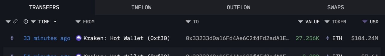 ブロックチェーンデータによると、大口投資家が過去数時間の間に、あるプラットフォームのホットウォレットから約1億4,220万ドル相当のETH、つまり約27,256 ETHを購入しました。この大規模な流入は、価格が3,500ドルを下回った後で3,760ドルレベル付近にとどまる中でも、イーサリアムの長期的な見通しに対する機関投資家の信頼が高まっていることを示しています。