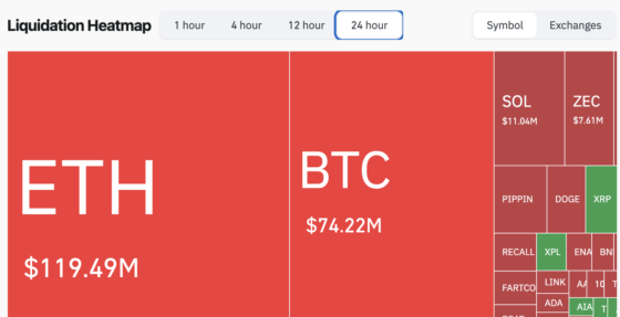 清算額は2億7,421万ドルで、前日比46.32%減少した。イーサリアムの清算額は1億1,949万ドルで、ビットコインの清算額7,422万ドルを上回った。イーサリアム清算額の82%はショートポジションに集中した。ビットコインの清算額比率はロング/ショート比が38%/62%だった。