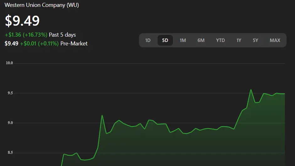 The strategy aligns with what’s already happening onchain: USDT and USDC volumes through emerging market exchanges have doubled YTD, while USDC remittance corridors (like Philippines and Brazil) are seeing faster settlement speeds and lower costs than traditional wires. Western Union’s “digital-first” expansion into Latin America, via Argentina and Brazil wallets, makes stablecoin integration a natural next step. This news pushed the stock higher, and WU is up (+16.7%) since.