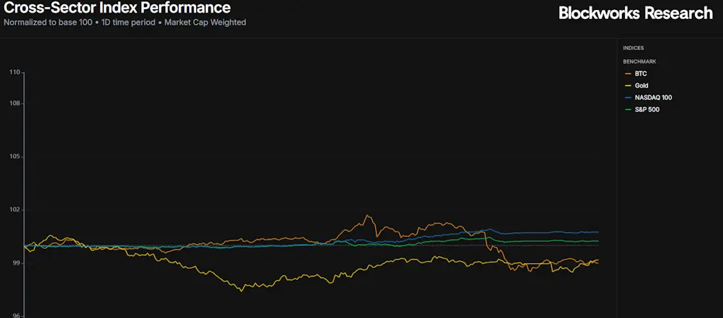 Global markets diverged sharply as traditional risk assets held firm while crypto sectors saw a broad selloff. The Nasdaq 100 (+0.8%) and S&P 500 (+0.3%) extended their recent resilience, supported by strong tech earnings and cooling Treasury yields. Gold (-0.8%) and BTC (-1.0%) both slipped, signaling modest risk rotation rather than outright fear or a mild “risk-off” tilt within digital assets, even as equities stayed buoyant.