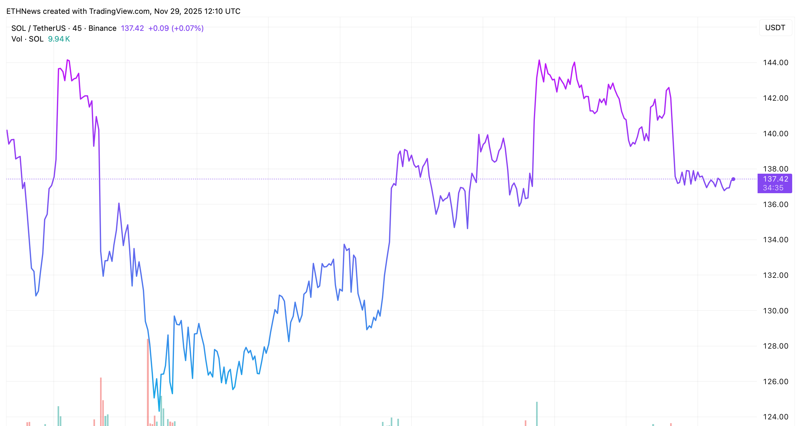 ソース: ETHNews オリジナルタイトル: ソラナETFが21日連続の流入の後、初めての流出を記録し、価格が$135 を上回る アメリカ合衆国のソラナETFは、2025年11月26日に初めての日次純流出を経験し、強力な21日間の連続機関投資家需要のストリークを終えました。