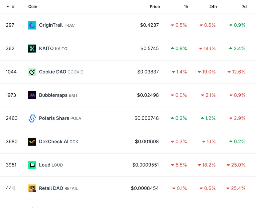 The decision triggered an immediate sell-off across InfoFi tokens. Kaito, Cookie DAO, BubbledMaps, Loud, Arbus and several others fell sharply within hours as traders priced in the loss of their core distribution and growth engine.