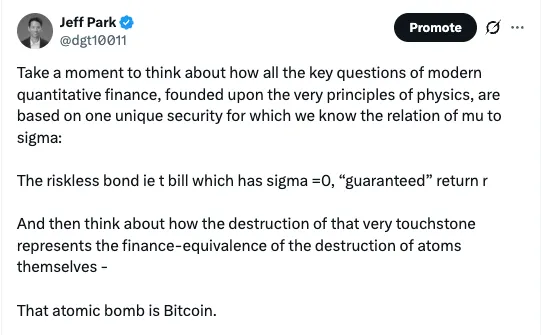 Ironically, Bitcoin’s lack of cash flows becomes an advantage. It has no earnings expectations, no coupons to devalue, and no yield curve to anchor market expectations. Bitcoin doesn’t need to be re-priced against a failed benchmark because it was never priced against one in the first place. It only needs to maintain scarcity when everything else proves to be excess or unreliable.