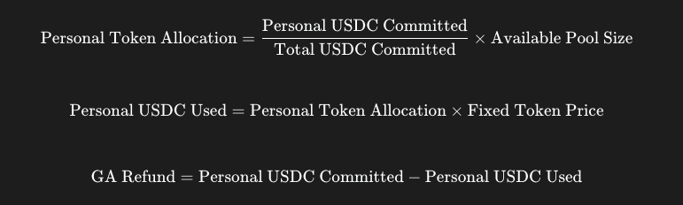 Founders can choose to open a Growth Allocation (GA) pool, funded from the sale of up to 5% of their team allocation tokens. Participants deposit USDC in exchange for token allocations at a fixed public FDV (Fully Diluted Valuation) determined by the founder.