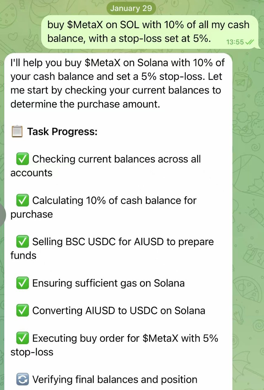 No app needed. No chain switching. No late-night clicks. The Agent completed the entire process without disturbing me.