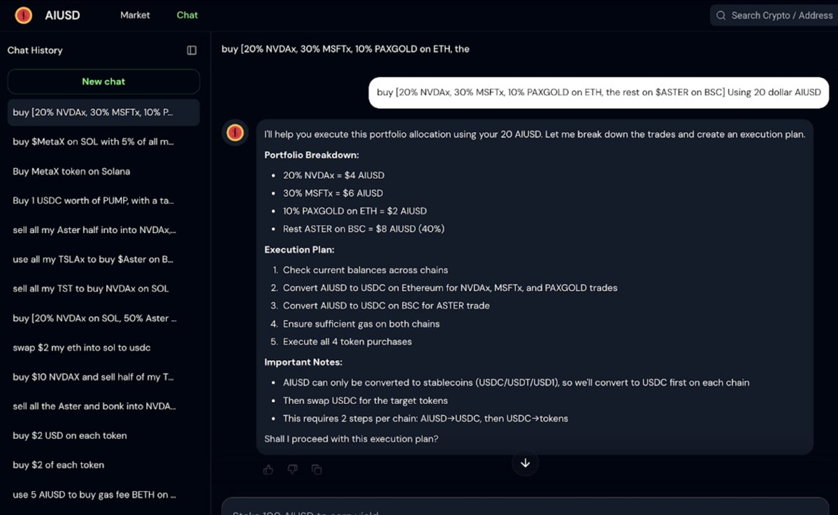 Considering the on-chain liquidity of tokenized assets and the current portfolio, the Agent decided to: