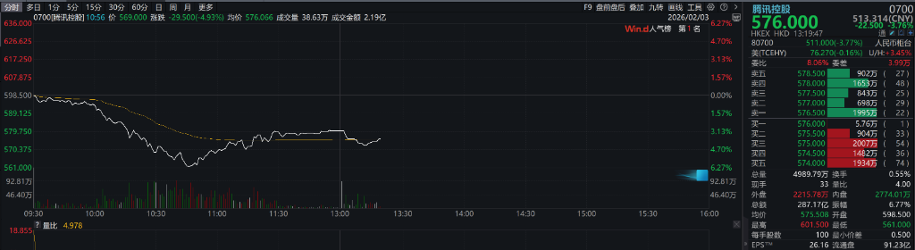 The Hong Kong Hang Seng Tech Index initially followed the strength of global markets in the morning but suddenly plunged around 10:50 a.m., with the decline expanding to 3.37% at one point, and closing the morning session down 1.31%. Kuaishou once fell over 7%, Bilibili, Baidu, and Tencent Holdings each dropped over 6%, and Alibaba once declined nearly 5%.