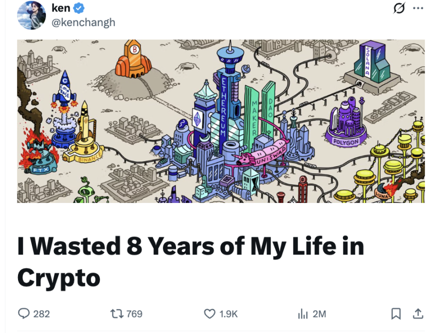 Mas a maioria não tentava enganar ninguém. Não lançavam vaporware, não emitiam tokens para explorar investidores de varejo, nem criavam meme coins. Acreditavam genuinamente no potencial da tecnologia, mas o entusiasmo era frequentemente equivocado e irracional.