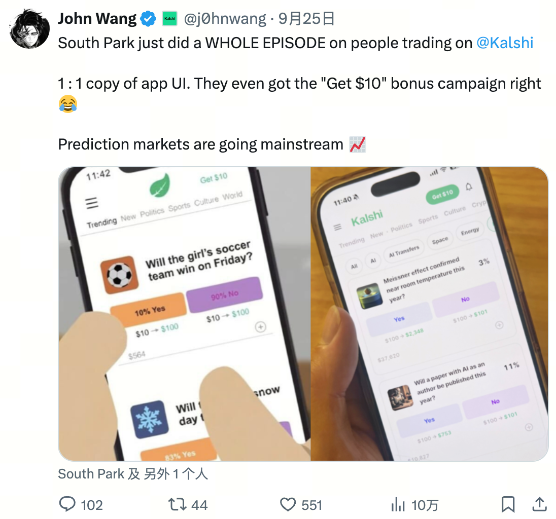 O fator decisivo para esse crescimento foi a exposição em “South Park”. Em setembro, a série exibiu episódio satirizando o setor de mercados de previsão, com destaque para a Kalshi e seu aplicativo móvel. Após a exibição, a participação de mercado da Kalshi disparou, evidenciando que o interesse do público gerou aumento real de usuários.