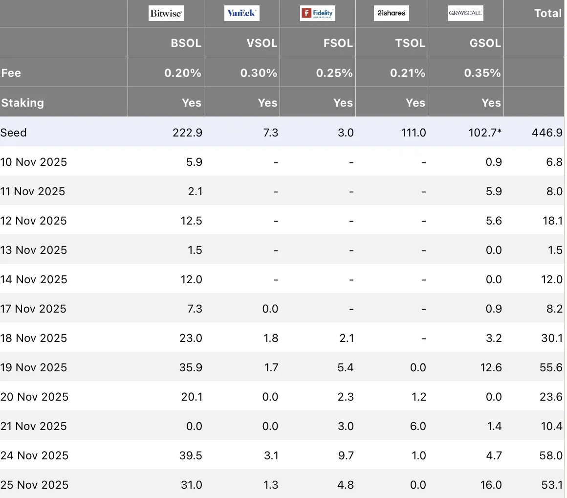 Embora as resgates de TSOL sejam notáveis, a narrativa mais ampla não mudou. Os ETFs de Solana continuam a acumular ativos a um ritmo significativo, e a estrutura de entradas a longo prazo sugere uma participação institucional sustentada.