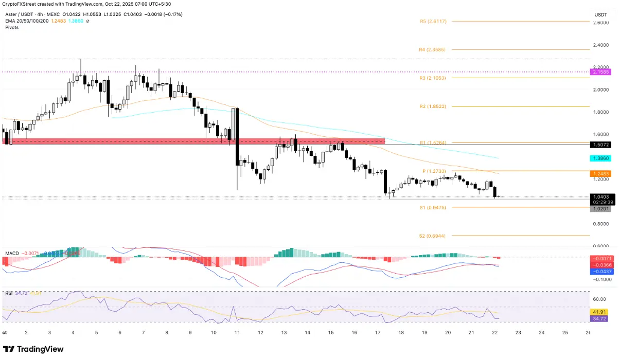 Aster ainda mantém sua posição acima da marca psicológica de 1 USD no momento em que este artigo foi escrito na quarta-feira, apesar de ter passado por duas sessões de queda consecutivas. Se o token da exchange descentralizada (DEX) perder a marca de 1 USD, a próxima zona de suporte estará no S1 Pivot Point em torno de 0,94 USD.