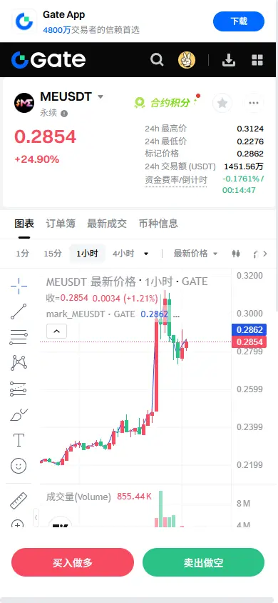 $ME Ежедневный рост превышает 22%, сопровождаемый ростом объема и цены, а также увеличением открытых позиций — это типичные признаки входа крупных игроков, а не давления со стороны медведей. После прорыва цена плотно консолидируется на высоких уровнях, без заметного продавливания, любые откаты на более низких таймфреймах быстро поглощаются. Пока цена держится выше структуры прорыва 0.2550, движущая сила вверх будет сохраняться.