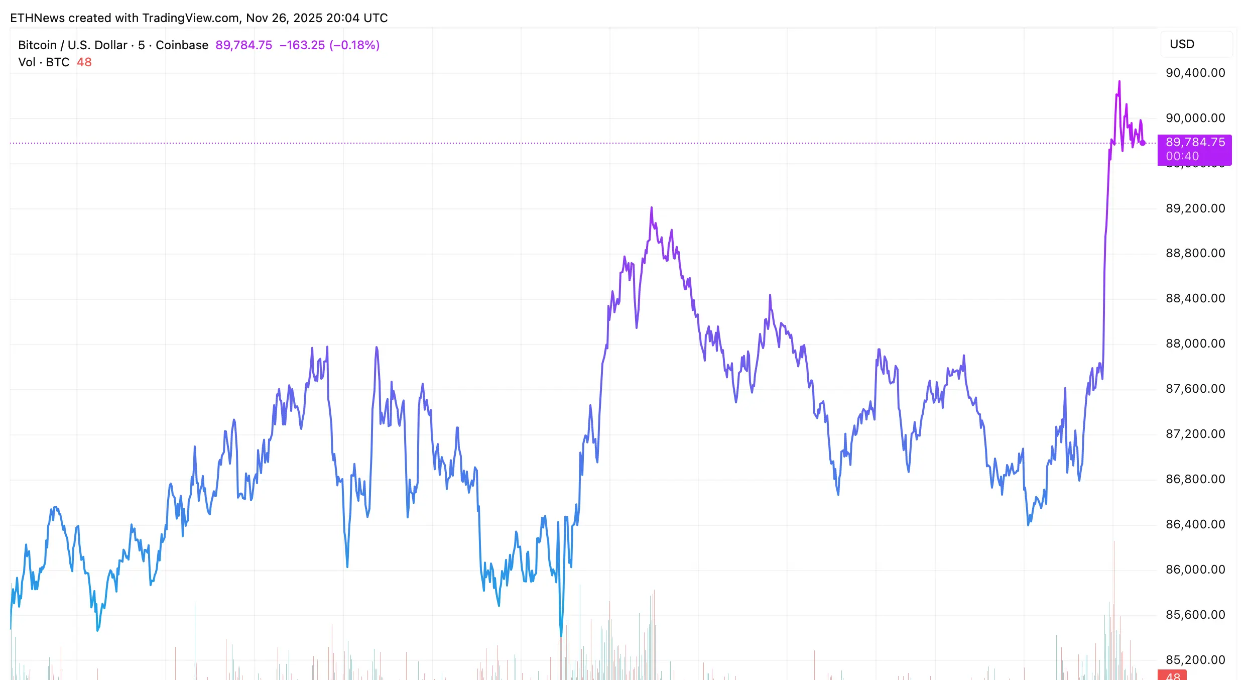 Bitcoin, bugün $90,000 barajını kısa bir süreliğine aştı ve yazı yazıldığı sırada satıcıların fiyatı $89,700–$89,800 aralığına geri ittiği önemli bir psikolojik seviyeyi yeniden kazandı. Bu hareket, keskin çıkışların genellikle eşit derecede keskin geri dönüşlerle karşılandığı bir volatilite ile mücadele eden bir piyasayı vurguluyor.
