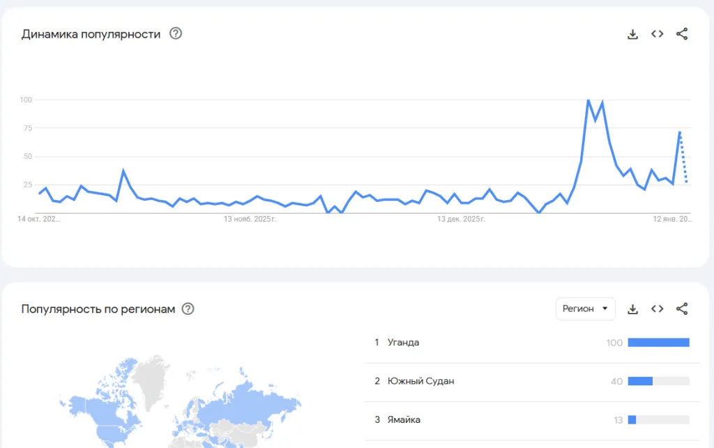 Google Trends search data reflects the public’s interest in the only remaining communication method for the population. The last peak occurred just before the shutdown on January 12–13.
