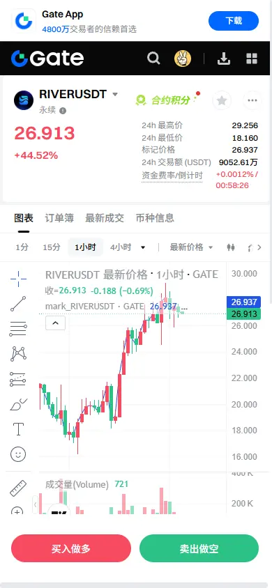 $RIVER surged strongly under massive momentum, with a gain of over 50%, and trading volume and open interest soared simultaneously. This is a typical signal of institutional entry, rather than mere short-term selling pressure.