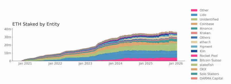Lido’s market share has decreased from 33% to 24%, indicating ecosystem diversification.