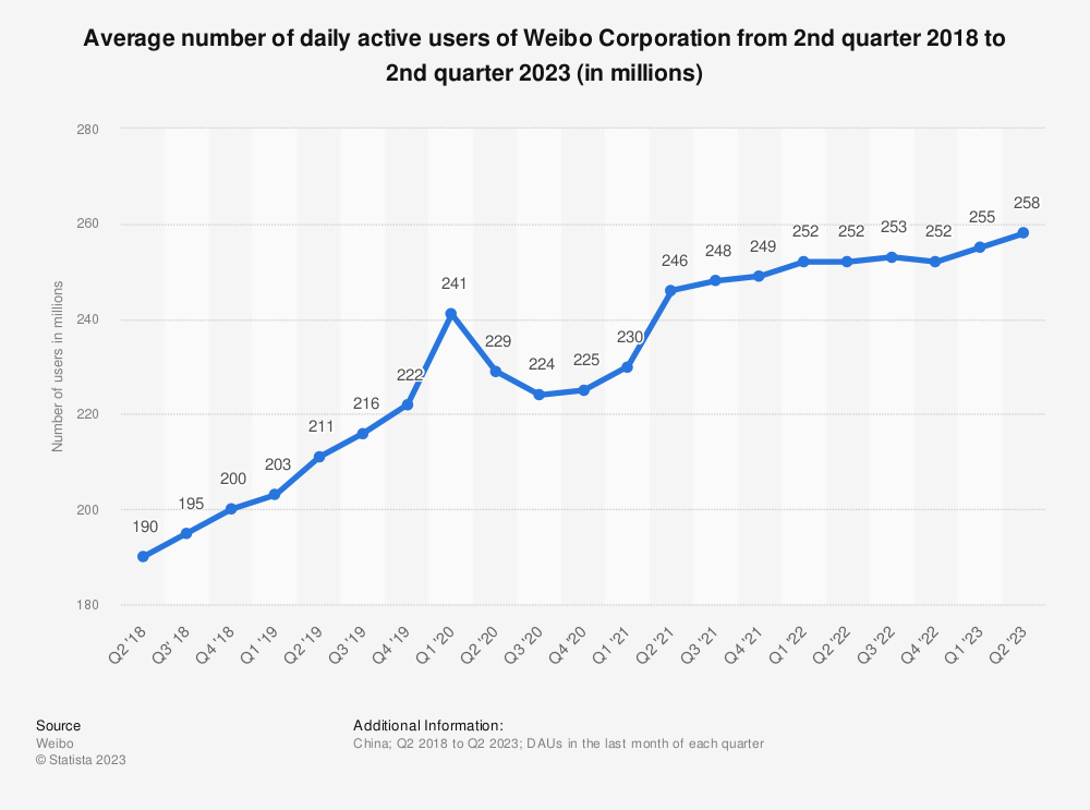 The firm’s operator Sina says Weibo has some 258 million daily active users.