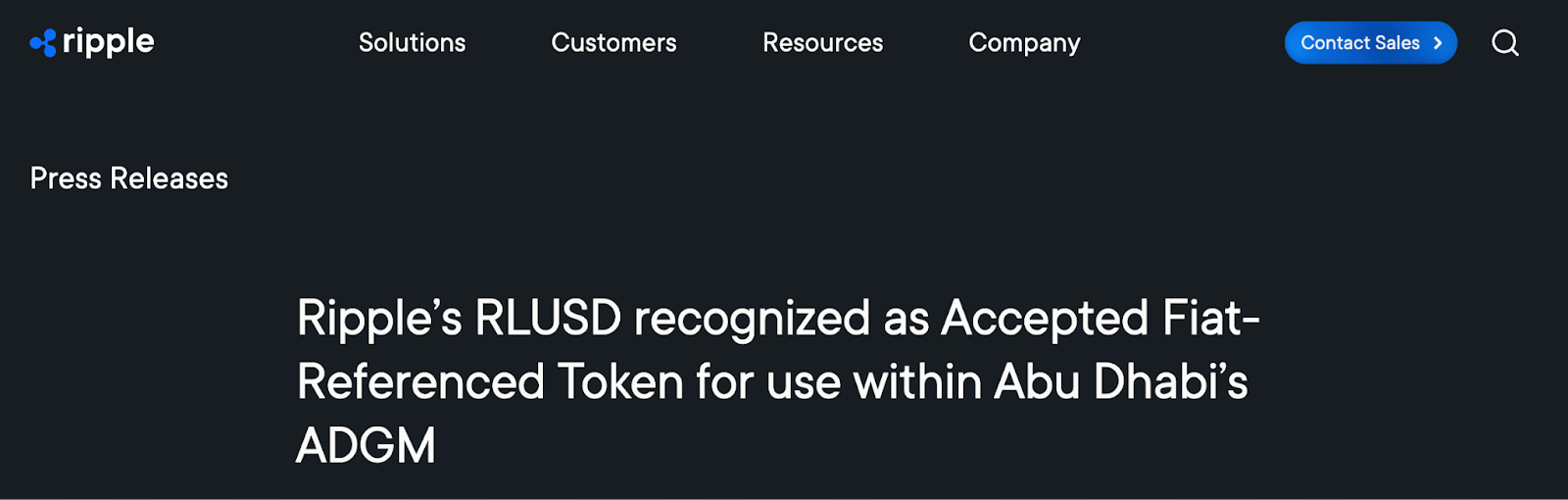 Ngày 27 tháng 11 năm 2025, Ripple thông báo RLUSD đã được Cơ quan Quản lý Dịch vụ Tài chính Abu Dhabi (FSRA) công nhận là token tham chiếu tiền pháp định được chấp nhận. Quy chế này cho phép RLUSD được sử dụng trong Abu Dhabi Global Market (ADGM) bởi các tổ chức được FSRA cấp phép cho các hoạt động tài chính tuân thủ quy định.