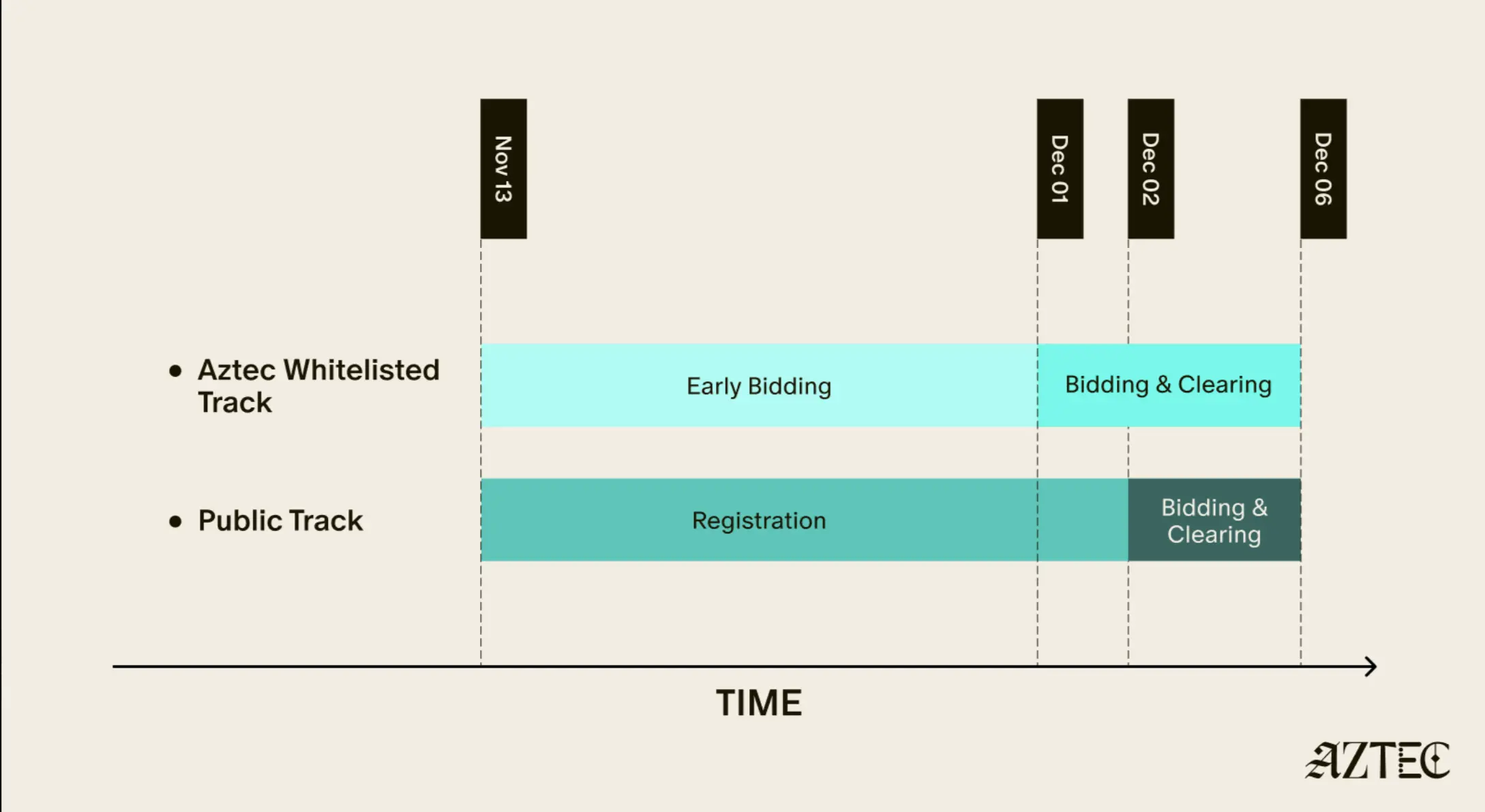 Như Aztec đã công bố, họ sẽ khởi động TGE thông qua việc bán token AZTEC. Bán vòng sắp xếp Genesis sẽ bắt đầu từ 22:00 ngày 13 tháng 11 đến 22:00 ngày 1 tháng 12, và đấu giá mở sẽ diễn ra từ 22:00 ngày 1 tháng 12 đến 22:00 ngày 6 tháng 12.