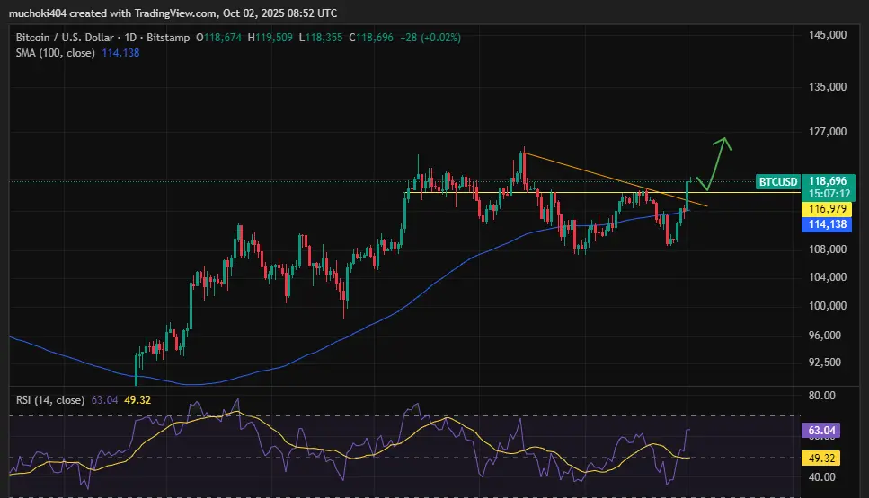 Sự bứt phá kỹ thuật của BTC trên $117K