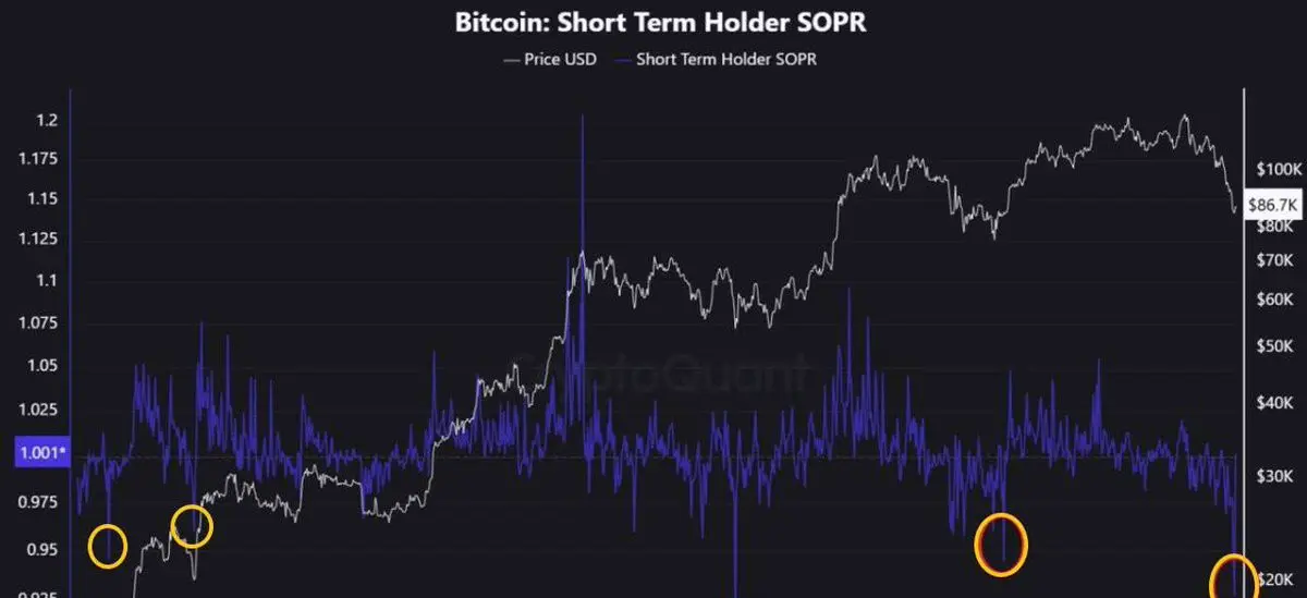 Nguồn: ETHNews Tiêu đề gốc: Bitcoin hiện lên tín hiệu đáy cổ điển khi những người nắm giữ ngắn hạn đầu hàng Liên kết gốc: https://www.ethnews.com/bitcoin-flashes-classic-bottom-signal-as-short-term-holders-capitulate/ Bitcoin vừa kích hoạt một trong những tín hiệu đáy ngắn hạn đáng tin cậy nhất của nó. Theo dữ liệu mới từ CryptoQuant, SOPR của Người nắm giữ ngắn hạn, một chỉ số theo dõi xem những người mua gần đây có đang bán với lợi nhuận hay lỗ, đã giảm xuống 0.94 vào tháng 11, ngay cả khi BTC giao dịch giữa mức $80,000 và $90,000.