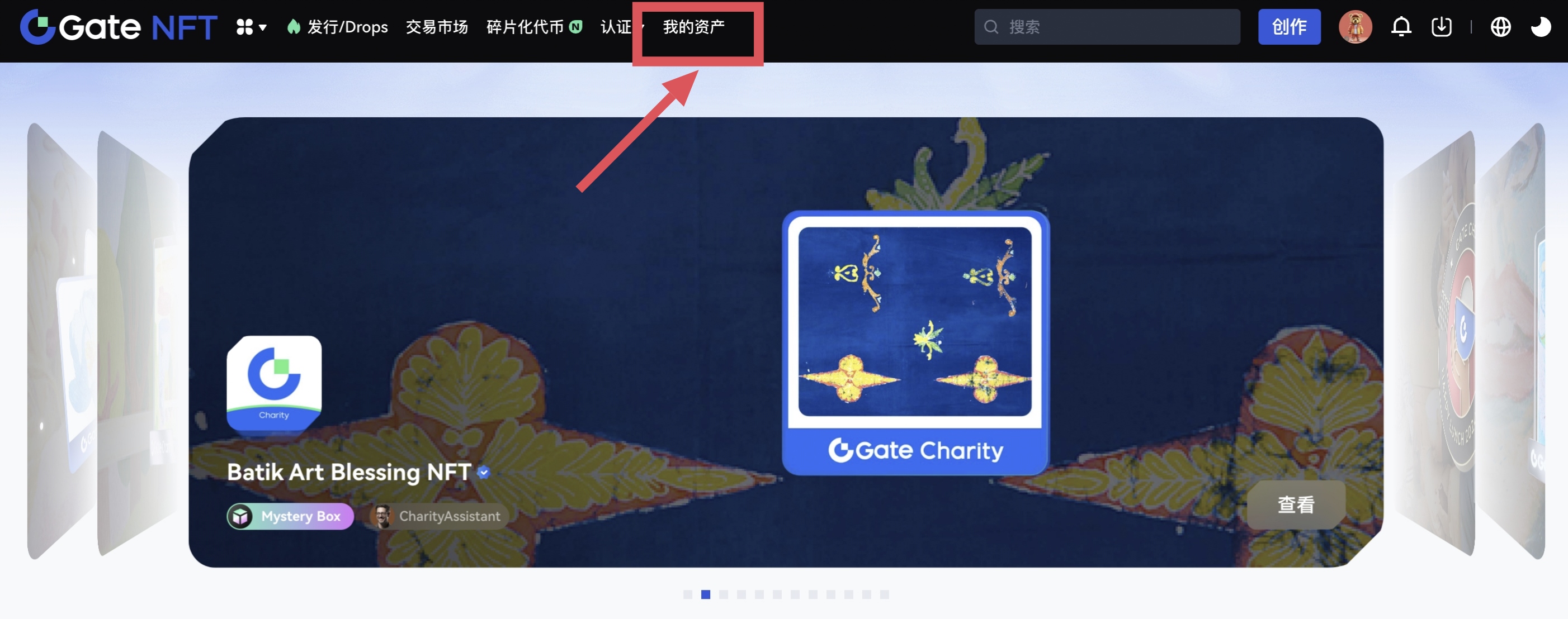 Step 1 : 请您在 Gate NFT 首页 点击「我的资产」。