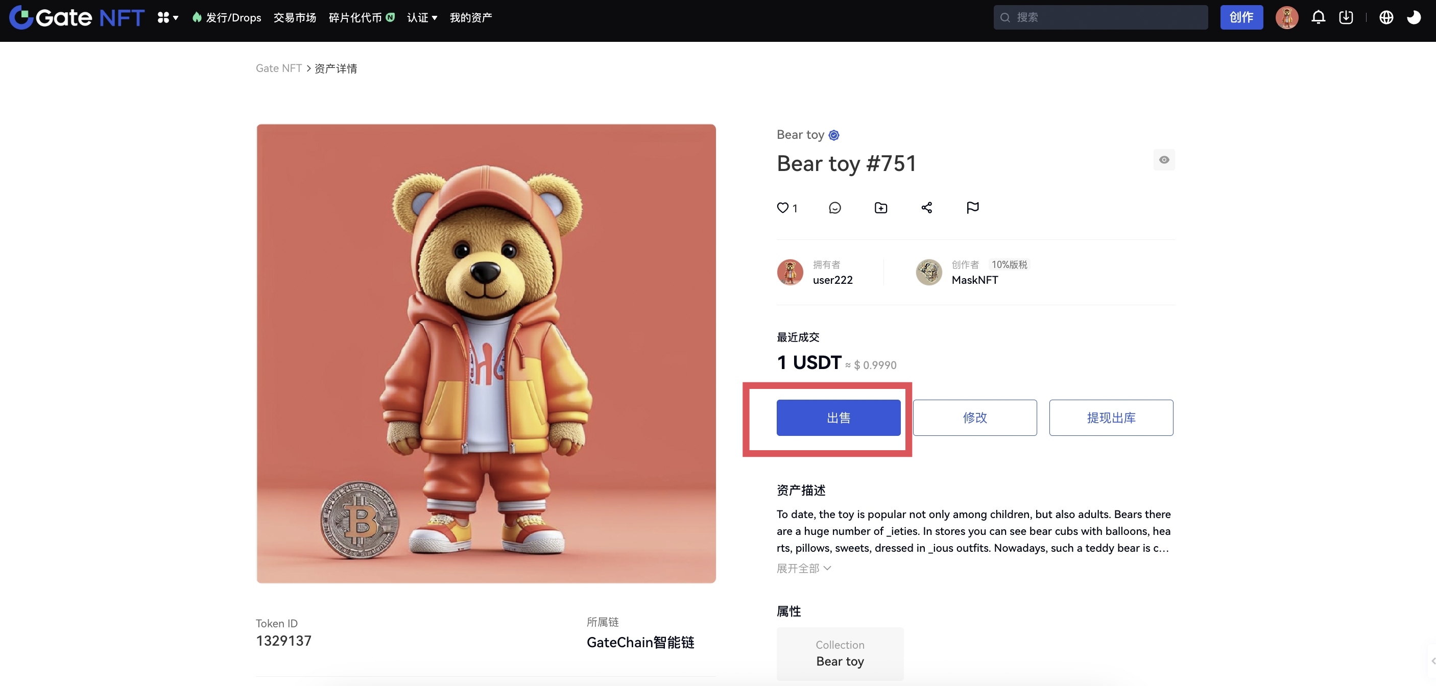 Step 5 : 上架完成后,您可以进入资产详情页面,查看已上架的 NFT。
