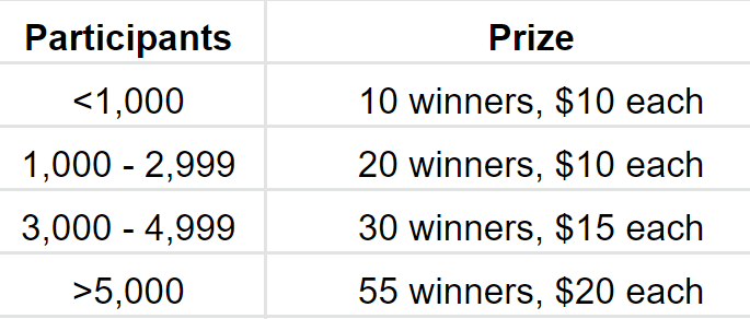 Top 60 who got the highest score (with at least 5 questions answered right) will be awarded $10 each!