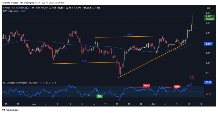 بيتكوين (BTC) تجاوزت النقاط العالية التاريخية السابقة، وبلغت 11.7 ألف دولار. ايثر تبعها في اتجاه الصعود، بينما مجموعة من الألتس مثل Sui (SUI) وRipple (XRP) تشهد أيضًا نموًا انفجاريًا بفضل زخمها الخاص. المحللون مثل JA Schwab وCryptoPatel وWorldOfCharts وCrypto Rand يراقبون الاتجاه عن كثب، ووفقًا للرسوم البيانية التي شاركوها، بدأت الحالة تصبح صاعدة بشكل شامل.
