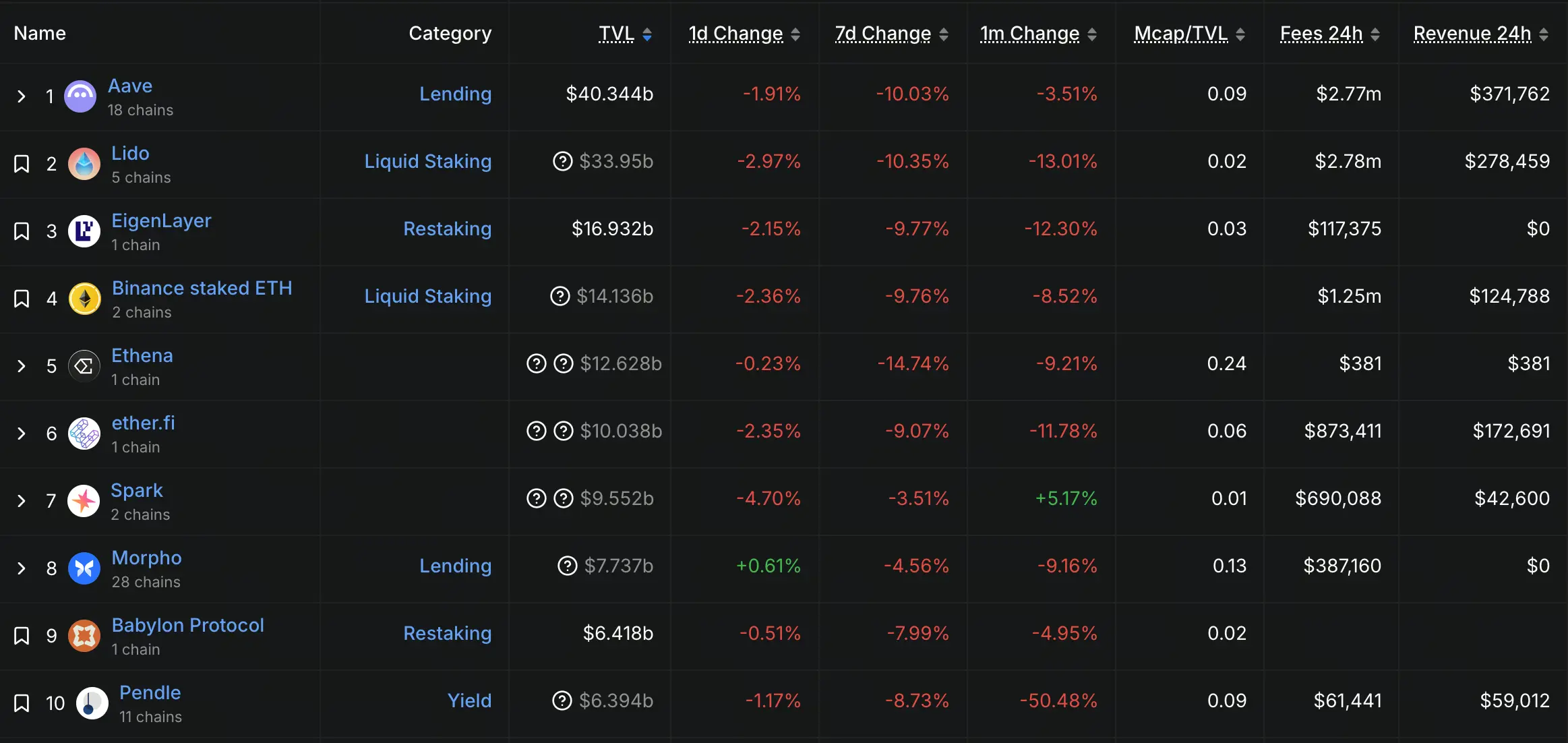 ! DeFi TVL Top10