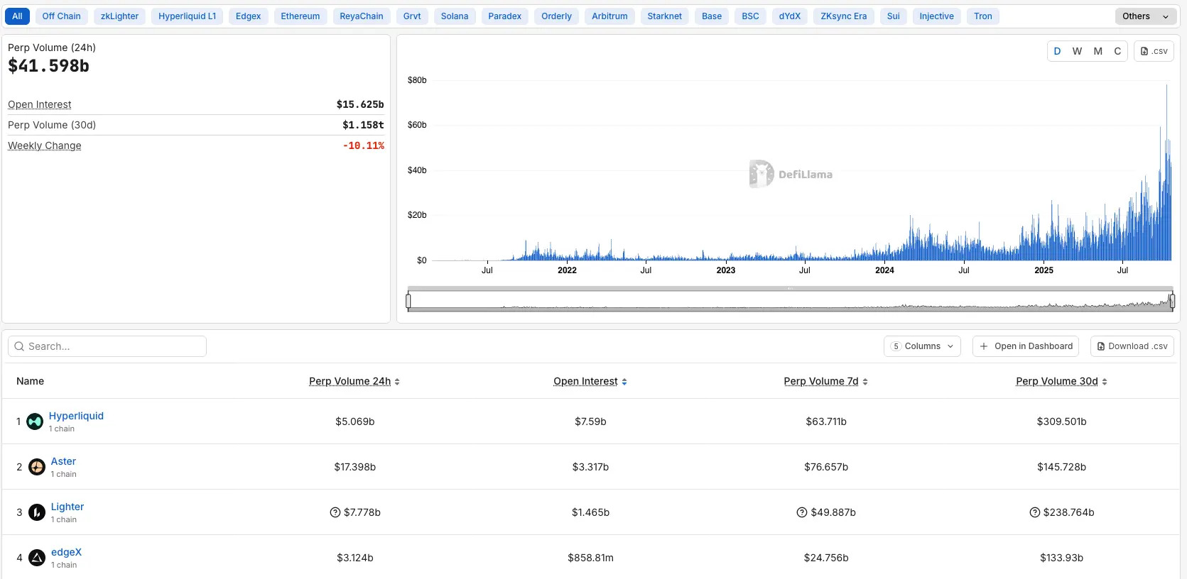 El resto de las cientos de Perp DEX comparte el 15% restante, con un efecto de liderazgo muy claro.