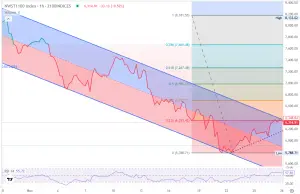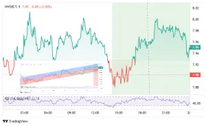 Índice NWSBCT para Blue Chips: El índice NWSBCT negociable en tiempo real ( es una replicación invertible del amplio mercado utilizando un subconjunto de blue-chip ), comúnmente conocido como “Blue Chips.” En el gráfico semanal, la ruptura del wedge de 5 días se mantiene; en el gráfico diario, el precio prueba el soporte invertido en 7.90–7.92. 📍A las 9:00 CET, se está negociando alrededor de 7.98.