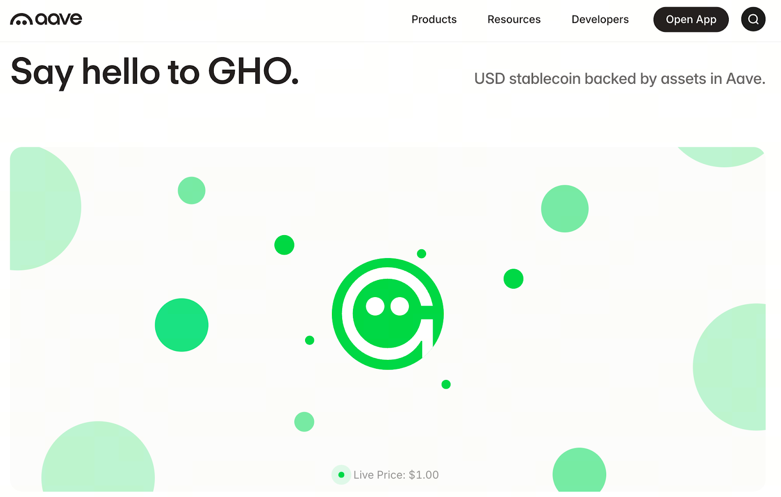 L’oracle de prix d’Aave évalue en permanence 1 GHO à 1 $. Ce principe contribue à la stabilité et à la transparence du système.