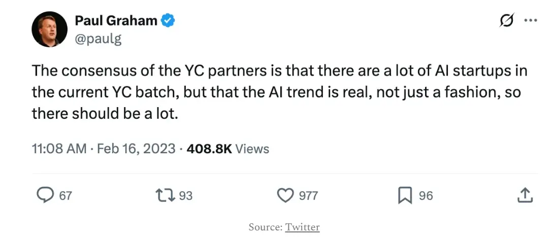 Ironisnya, Paul Graham menggambarkan konsensus ini sebagai refleksi logis dari realitas teknologi. Saya yakin ini benar. Namun, saya pikir yang berbeda adalah karakteristik konsensus “apa yang bisa mendapatkan investasi” telah menjadi tujuan akhir dari seluruh operasi, yang mengesampingkan hal-hal yang mungkin lebih berpikir berlawanan dan kurang konvensional di masa lalu.