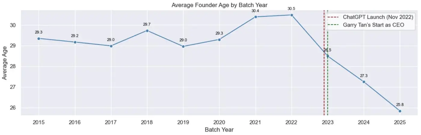 1. Muda: Rata-rata usia pendiri YC telah turun dari 29-30 tahun menjadi sekitar 25 tahun sekarang.