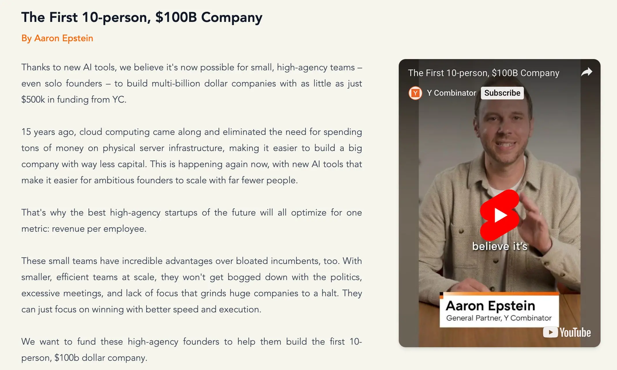 Jadi, bagaimana dengan versi musim gugur 2025? Itu adalah “perusahaan pertama dengan 10 orang, bernilai 100 miliar dolar.”