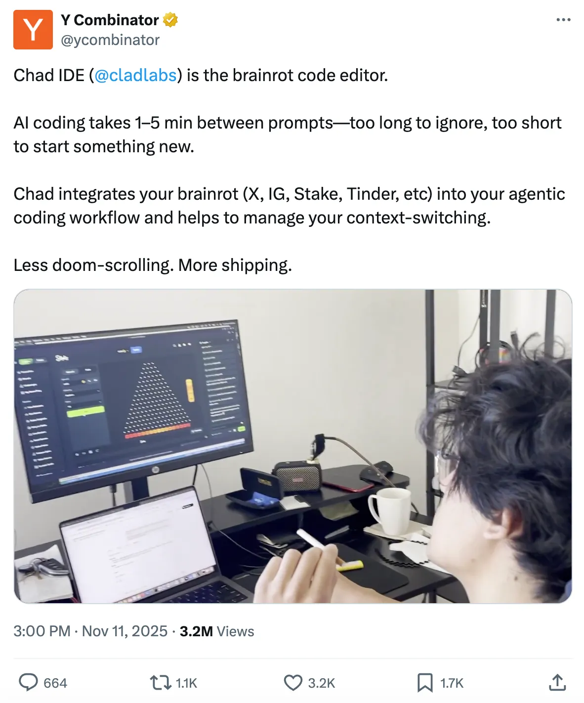 Minggu lalu, YC mengumumkan salah satu investasi terbarunya: Chad IDE: sebuah proyek “menggerogoti otak”.