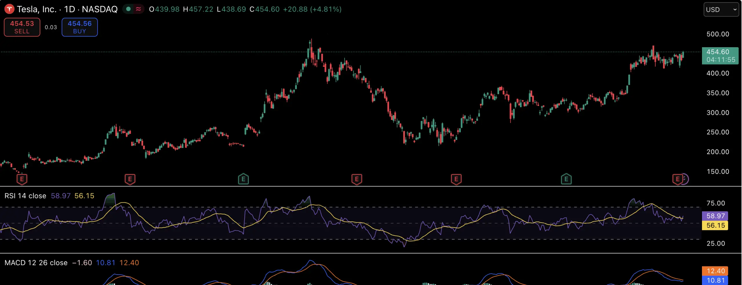 Para trader memperhatikan apakah Tesla dapat mempertahankan pergerakannya di atas $455, yang dapat memicu pergerakan menuju kisaran $480–$500 jika sentimen pasar yang lebih luas tetap positif. Di sisi downside, dukungan langsung terletak pada rata-rata bergerak 21 hari di dekat $430, diikuti oleh lantai yang lebih kuat sekitar $400.