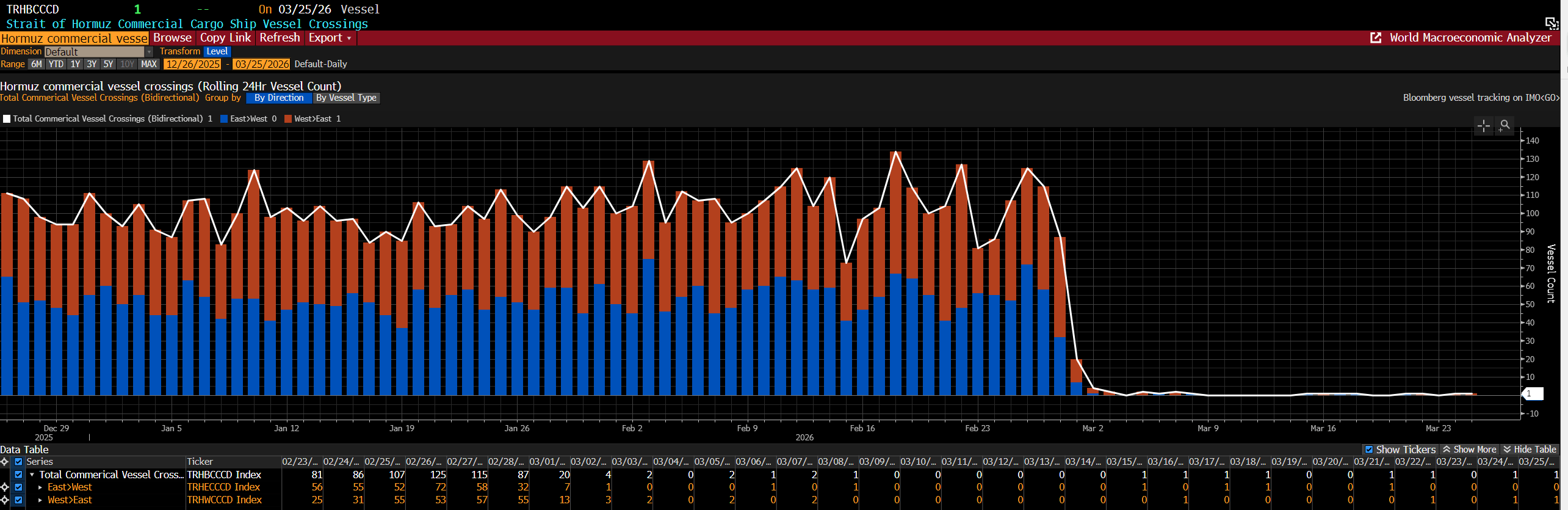 Namun, volume tersebut hampir berhenti, dengan Andre Dragosch, kepala riset Eropa Bitwise, menunjukkan bahwa hari ini hanya ada “1 kapal” yang melewati jalur tersebut.