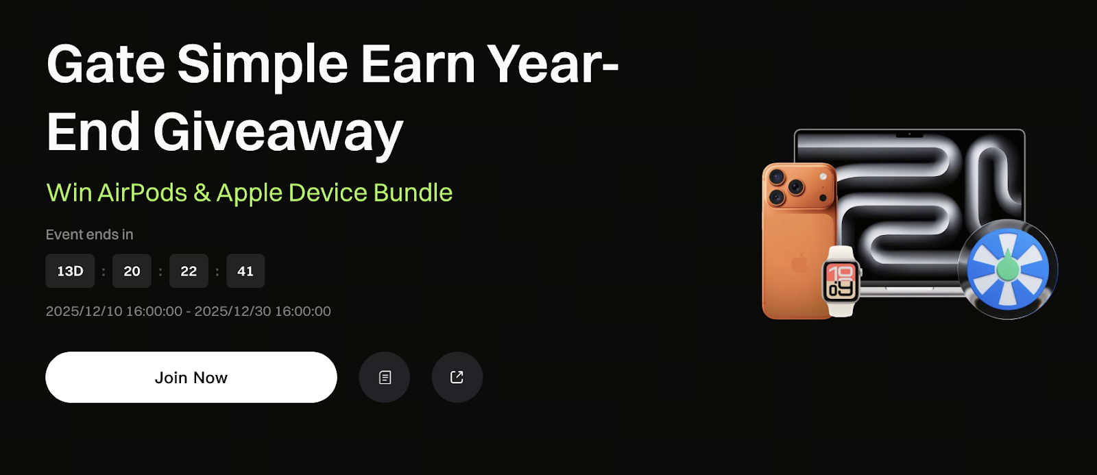 Gate Earn 年末リワードイベントでは、AirPods Pro 3やAppleバンドルなど高額賞品を多数ご用意しています。投資商品への参加とタスク達成で、実物リワードとともに魅力的なリターンを獲得可能です。期間限定イベントにつき、今すぐ参加してAirPods Pro 3やAppleバンドルを手に入れ、2025年を最高の形で締めくくりましょう!