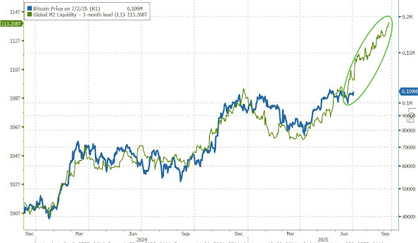 ビットコインは通常、世界とアメリカのM2通貨供給の変化を追跡するために3〜6ヶ月遅れることがあります。現在、世界のM2通貨供給はビットコインに対して3ヶ月遅れており、これはビットコインというこのトップ暗号資産が今後数ヶ月間ポンプを継続する可能性があることを意味しています。