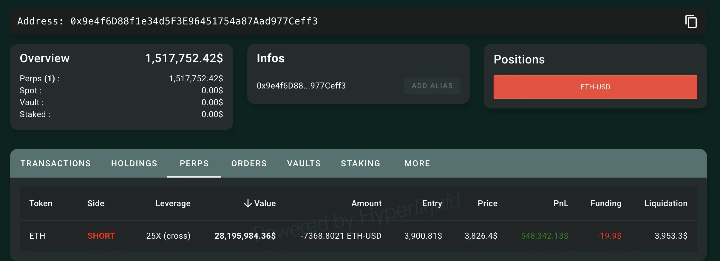 この「100% 勝率」の暗号資産クジラは、総保有額約3.75億ドルで、市場で最も注目されているスマートマネーの一つです。100% 勝率は誇張されているか、特定の統計基準に基づいている可能性がありますが、彼の継続的な買い増しの行動自体が強いブルシグナルです。歴史的に優れたパフォーマンスを持つトレーダーが市場の下落時に逆張りで買い増すとき、彼が現在の価格が過小評価されていると考えていることを示唆することがよくあります。