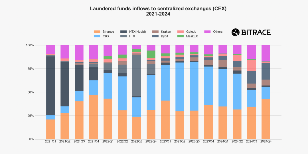 中央集権的な取引所は、他の実体に比べて資金の現金化において独自の優位性を持っているため、マネーロンダリング団体に好まれやすいことを考慮して、Bitraceは主要な中央集権型暗号通貨取引プラットフォームのホットウォレットアドレスに対して資金監査を行いました。
