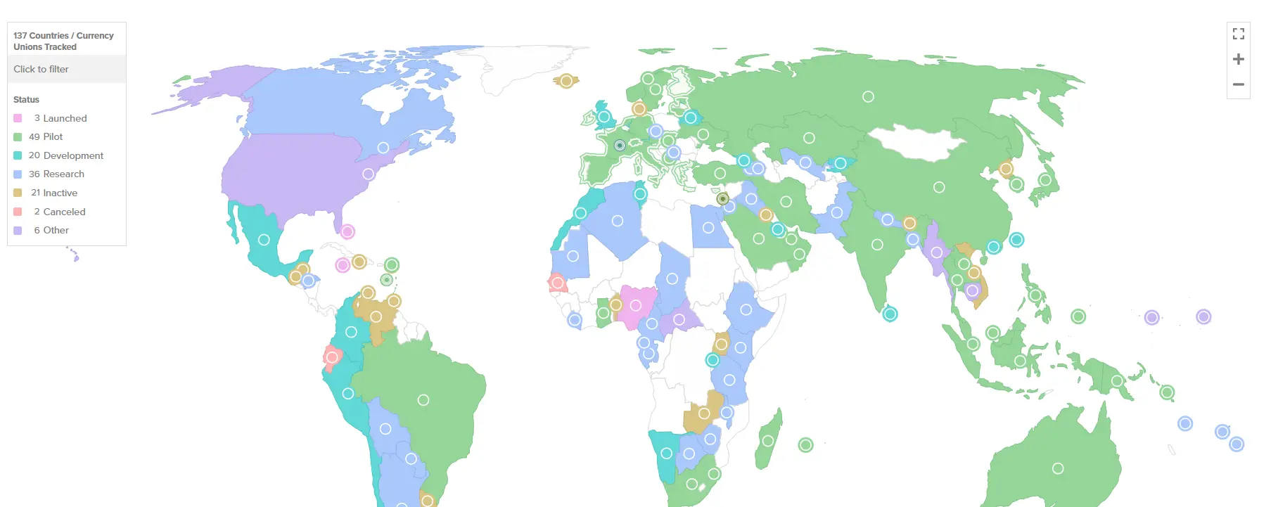 中央銀行デジタル通貨(CBDC)を導入したのは3つの管轄区域のみですが、他の多くの地域がその選択肢を検討しています。