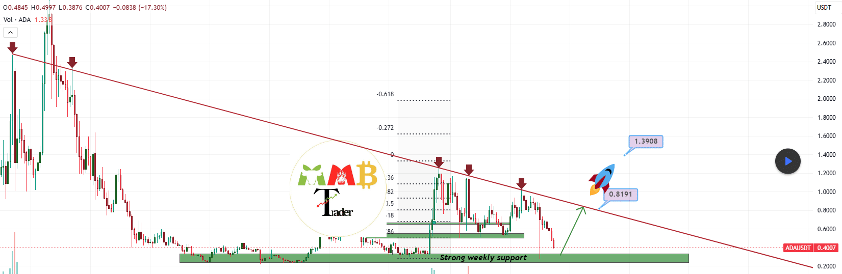 それにもかかわらず、MMB Traderは、$0.40のサポートが維持されており、価格が回復し始めたときに良いポートフォリオの上昇につながる可能性のある蓄積ポイントとして機能する可能性があると指摘しました。さらに、彼は、現在のレベルからモメンタムが強気に転じた場合のADAの目標を強調しました。